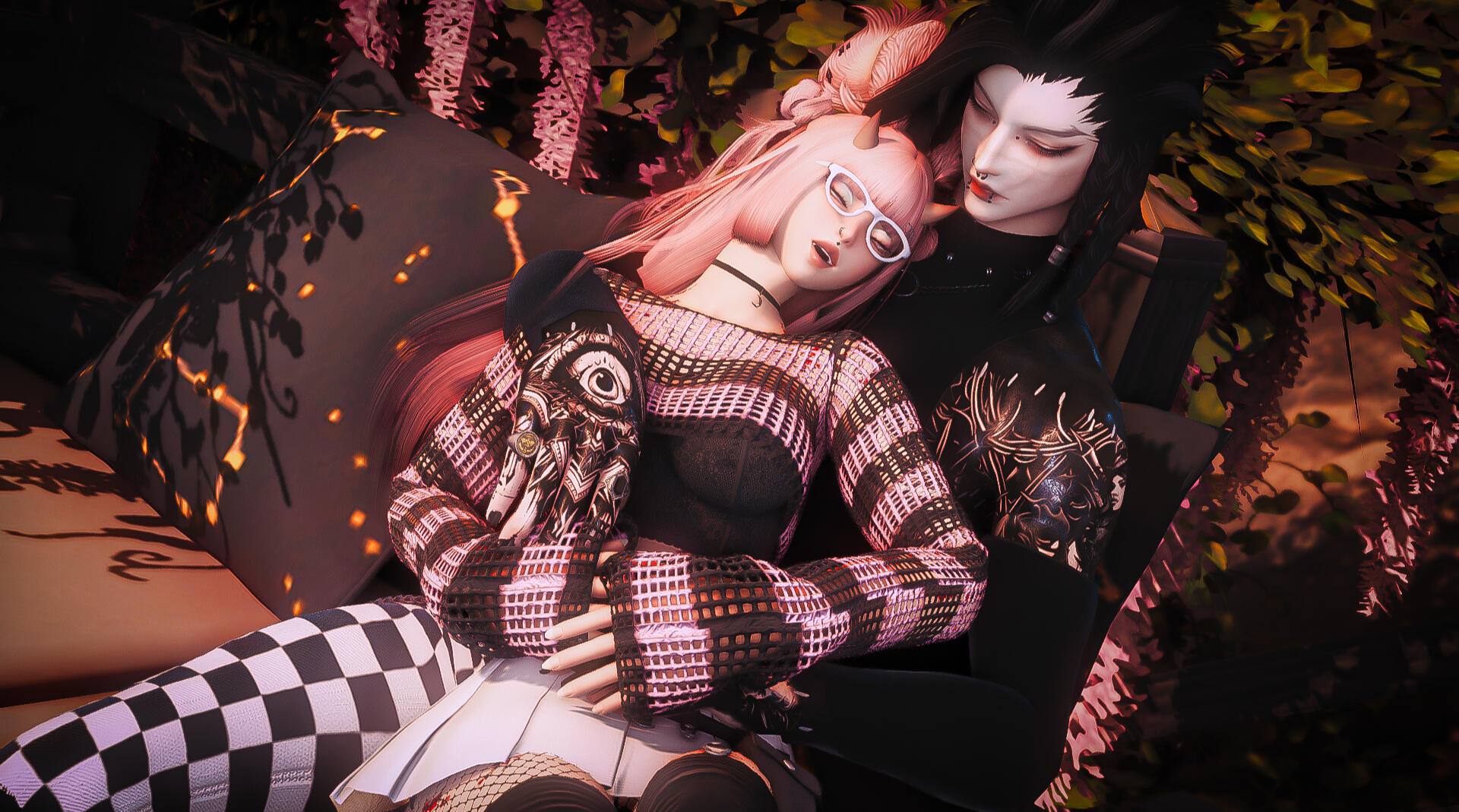 Aiden approached her, blood moon harvest eyes--seeing red--such a beautiful smile. Her pale skin glistened among the ambient light of the fireplace. They conversed for the first time. Glances here, smiles there. Flirtatious hints. "Want to take this upstairs? I have the perfect spot." She would suggest, and we would go, up to the second floor of this magical tower under the stars. She brought him to a corner and there they would converse for the rest of the night, amongst other things. After being satisfied by him, she hired him as an escort. Recommended highly by herself. A praise Aiden was not aware was so important to have. They would begin to spend more and more time together through out the week. Raine would drag Aiden around to a bunch of new places, meeting a bunch of new people like an owner who got a brand new puppy.